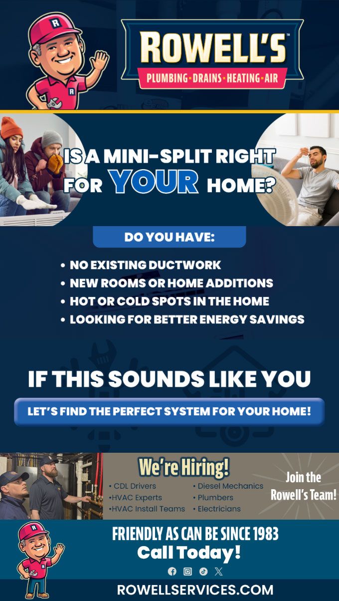 "Friendly As Can Be Since 1983!" When you need help with your plumbing, drains, heating, cooling or electrical in Bristol, you can always rely on Rowell's Services! Call us now or book online!